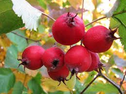 - Плоды: ярко-красные, созревают в сентябре-октябре, съедобные и полезные
